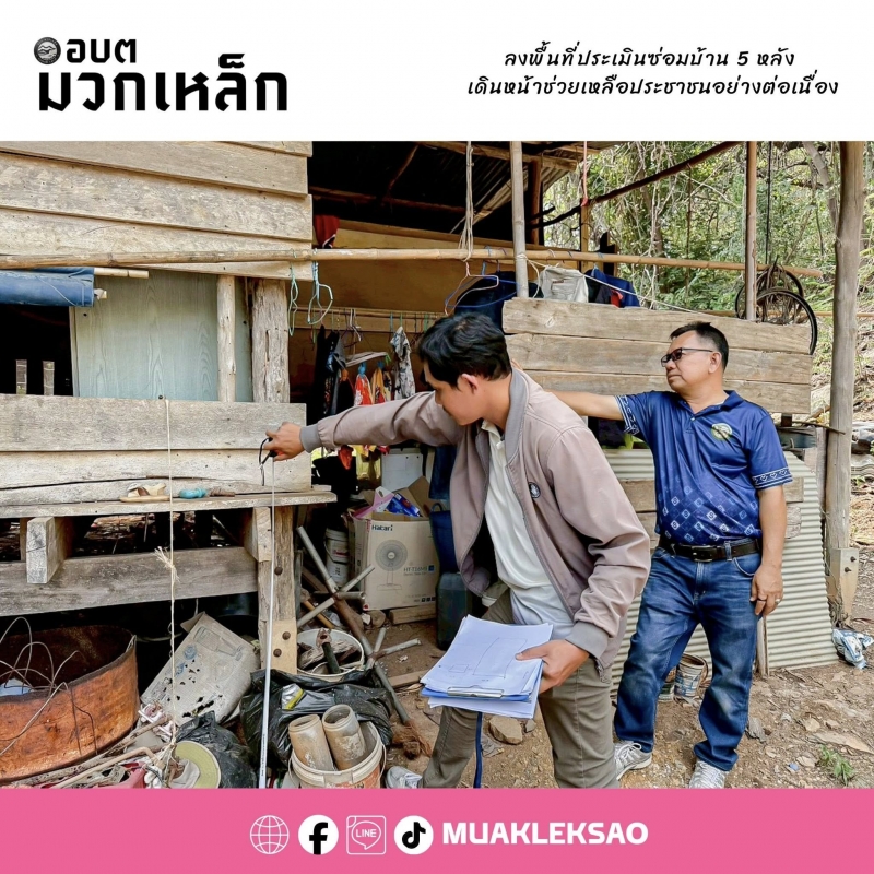 วันที่ 3 เมษายน 2569 องค์การบริหารส่วนตำบลมวกเหล็ก ภายใต้การนำของนายสุรศักดิ์ วาดเขียน นายกองค์การบริหารส่วนตำบลมวกเหล็ก มอบหมายให้กองสวัสดิการสังคมร่วมกับกองช่าง ลงพื้นที่ดำเนินการประเมินราคาค่าใช้จ่ายในการซ่อมแซมและก่อสร้างที่อยู่อาศัยของประชาชน
