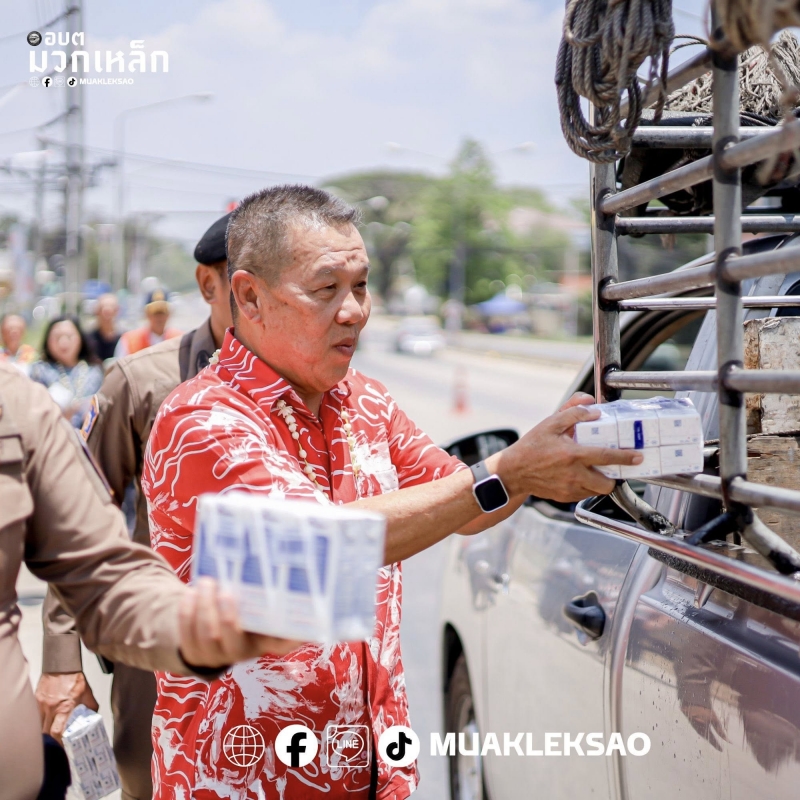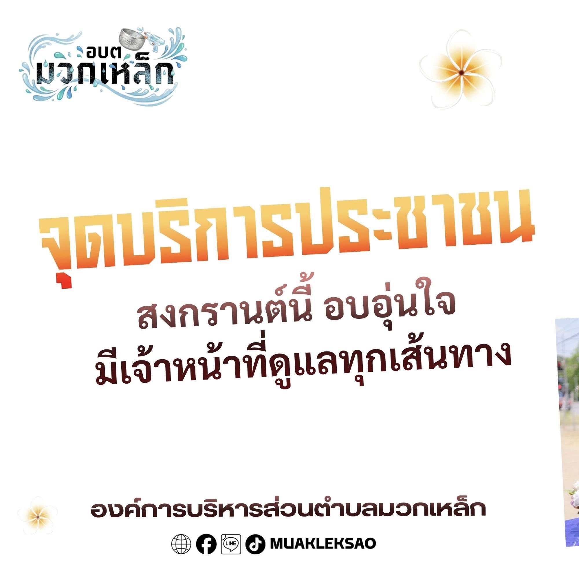 วันที่ 13 เมษายน 2569 ณ จุดบริการประชาชนบริเวณสี่แยกต้นแค องค์การบริหารส่วนตำบลมวกเหล็ก นำโดย นางสาวอ้อยทิพย์ ปานสอาด นายอำเภอมวกเหล็ก