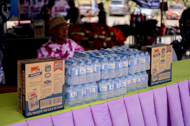 นอกจากนี้ ยังได้มีการแจกจ่ายนมกล่องให้กับประชาชน โดยได้รับการสนับสนุนนมกล่องจาก องค์การส่งเสริมกิจการโคนมแห่งประเทศไทย (อ.ส.ค.) สร้างความประทับใจและรอยยิ้มให้กับผู้สัญจรเป็นอย่างดี