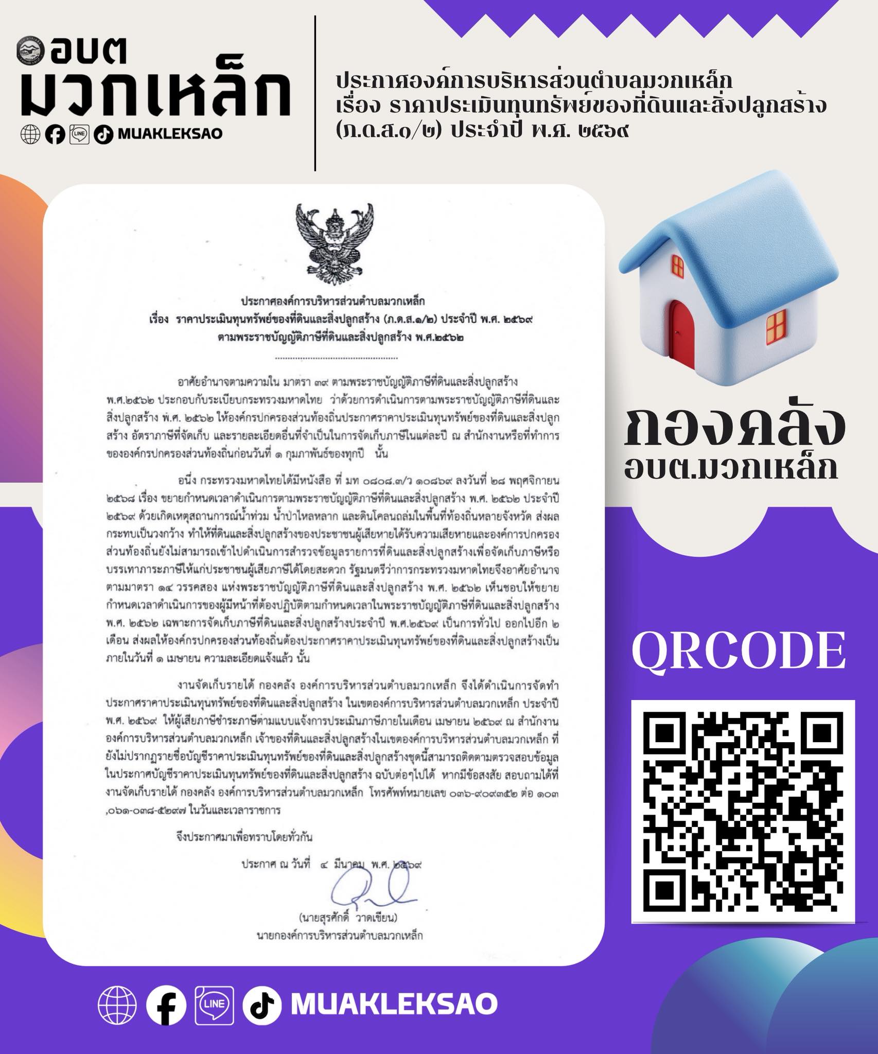 ประกาศองค์การบริหารส่วนตำบลมวกเหล็ก เรื่อง ราคาปร...