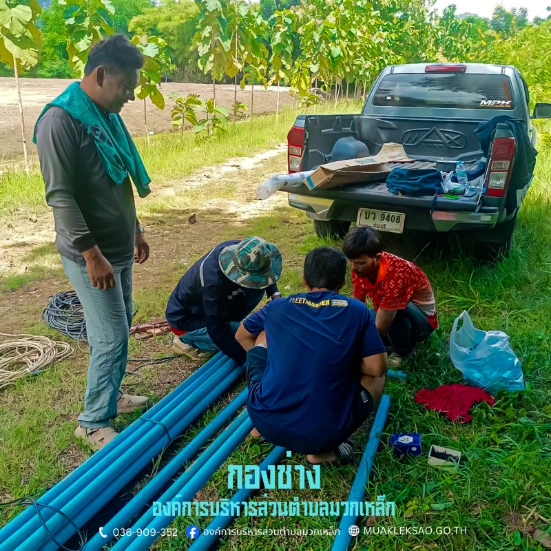 เจ้าหน้าที่กองช่าง องค์การบริหารส่วนตำบลมวกเหล็ก ได้ลงพื้นที่ดำเนินการ ติดตั้งท่อและปั๊มน้ำซับเมอร์ส (Submersible Pump) ณ บริเวณสนามฟุตบอล ใกล้ศูนย์เศรษฐกิจพอเพียง หมู่ที่ ๑๒ บ้านเขาไม้เกวียน ตำบลมวกเหล็ก อำเภอมวกเหล็ก จังหวัดสระบุรี