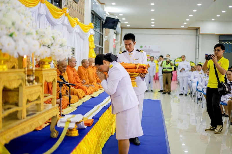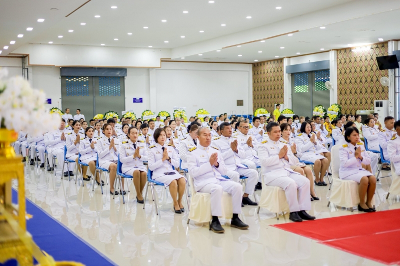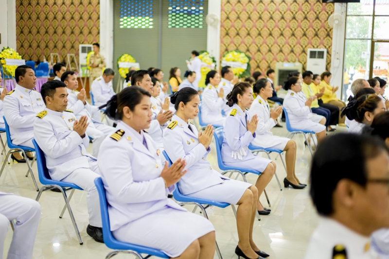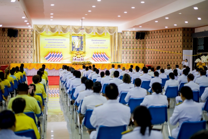 พิธีเริ่มขึ้นเวลา ๐๗.๓๐ น. ด้วยการสวดพระพุทธมนต์และทำบุญตักบาตรพระสงฆ์ เพื่อถวายเป็นพระราชกุศล และในเวลา ๐๘.๐๐ น. ได้มีการประกอบพิธีวางพวงมาลาและถวายบังคม เพื่อน้อมสำนึกในพระมหากรุณาธิคุณของพระองค์ท่านอย่างหาที่สุดมิได้