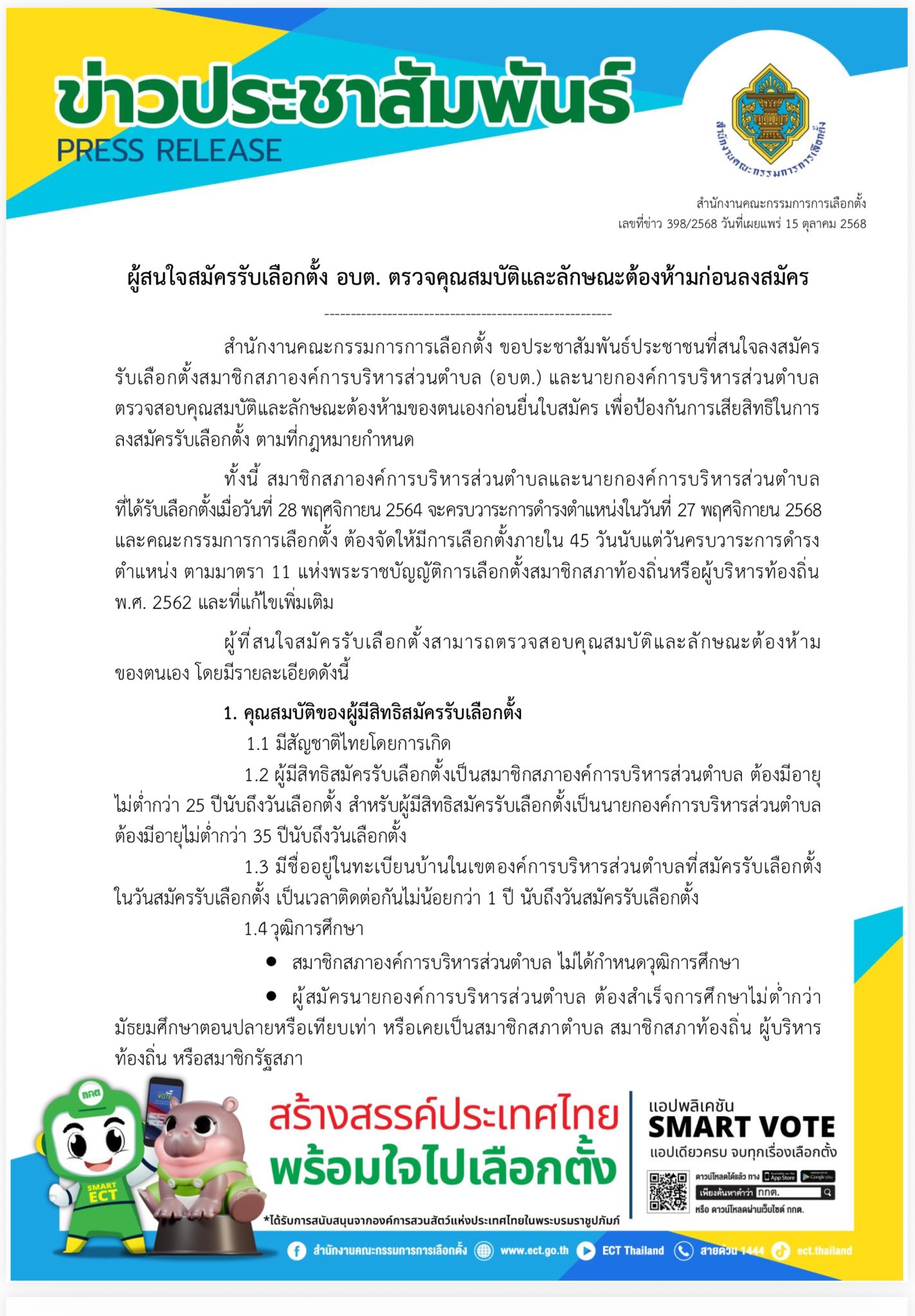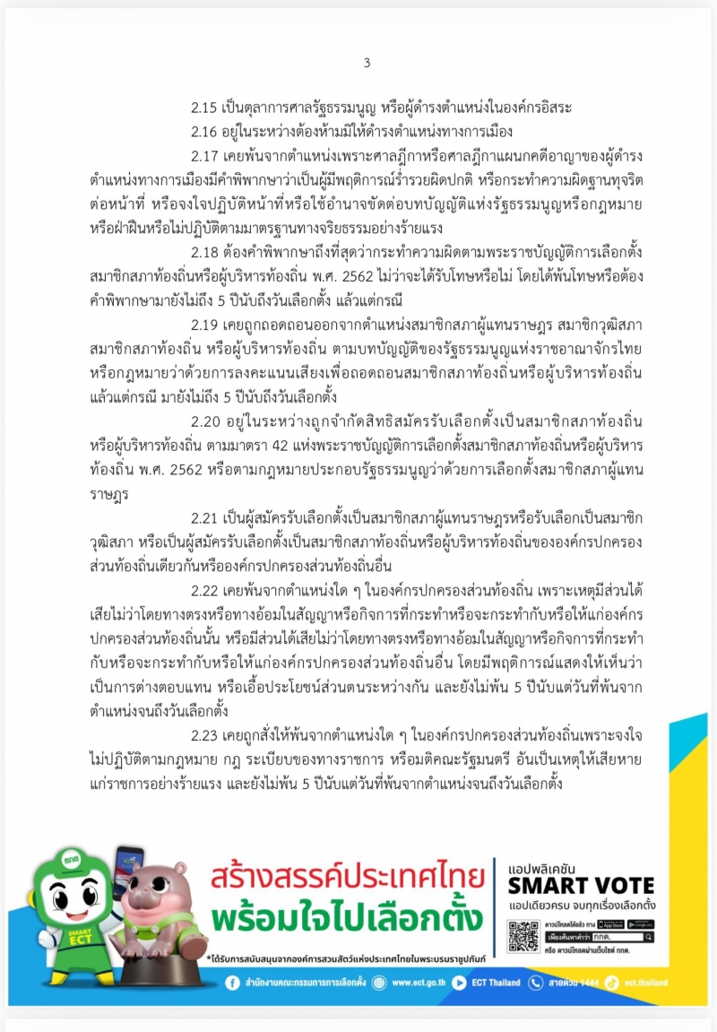 ผู้ที่สนใจสมัครรับเลือกตั้งสามารถตรวจสอบคุณสมบัติและลักษณะต้องห้าม