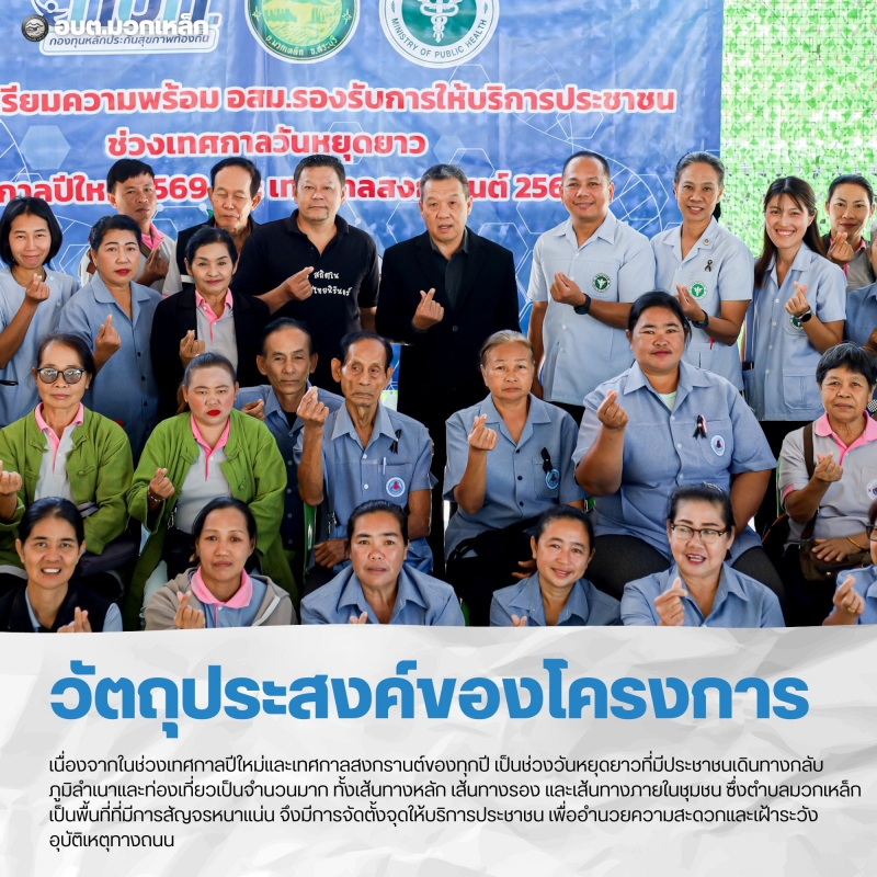 อาสาสมัครสาธารณสุขประจำหมู่บ้าน (อสม.) ถือเป็นกำลังสำคัญในการช่วยเฝ้าระวัง ป้องกัน และแก้ไขปัญหาอุบัติเหตุ รวมถึงการดูแลช่วยเหลือประชาชนที่ได้รับบาดเจ็บหรือเจ็บป่วยจากการเดินทางและการใช้รถใช้ถนนในช่วงเทศกาลดังกล่าว