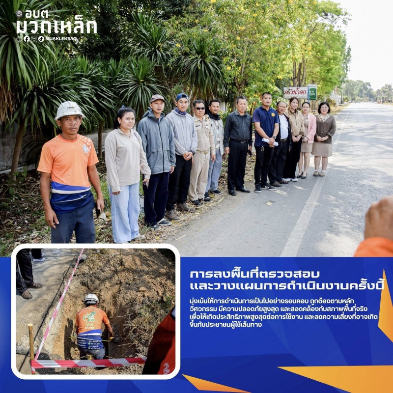ข่าวประชาสัมพันธ์ ( วันที่ 9 กุมภาพันธ์ 2569 ) นายสุรศักดิ์ วาดเขียน นายกองค์การบริหารส่วนตำบลมวกเหล็ก พร้อมด้วย นายสวัสดิ์ โสมรักษ์ รองนายกองค์การบริหารส่วนตำบลมวกเหล็ก นายสุรัตน์ เทพจันทึก สมาชิกสภาองค์การบริหารส่วนตำบลมวกเหล็ก ได้นำทีมเจ้าหน้าที่กองช่าง องค์การบริหารส่วนตำบลมวกเหล็ก ลงพื้นที่ร่วมกับ แขวงทางหลวงสระบุรี และ การประปาส่วนภูมิภาคสาขามวกเหล็ก เพื่อดำเนินการตรวจสอบพื้นที่และร่วมกันหารือ วางแผนการดำเนินงานด้านระบบไฟฟ้าแสงสว่าง