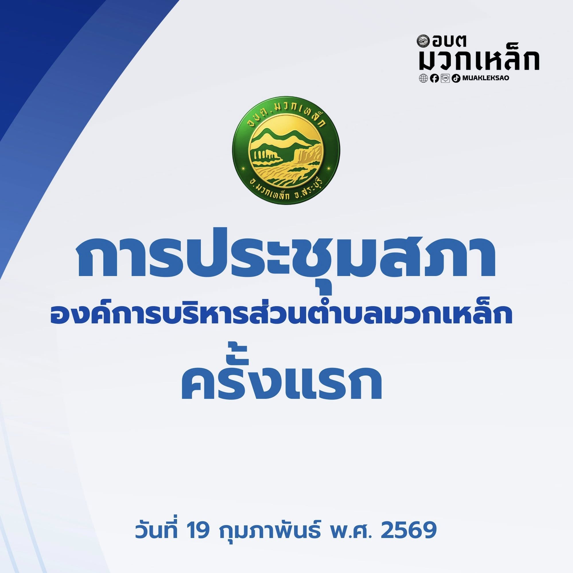 นางสาวอ้อยทิพย์ ปานสอาด นายอำเภอมวกเหล็ก เป็นประธานเปิดการประชุมสภาองค์การบริหารส่วนตำบลมวกเหล็ก “ครั้งแรก” ประจำปี พ.ศ. 2569 หลังการเลือกตั้ง โดยมี ท้องถิ่นอำเภอมวกเหล็ก พร้อมด้วย หัวหน้าส่วนราชการ ผู้อำนวยการกอง และเจ้าหน้าที่ที่เกี่ยวข้องเข้าร่วม โดยประธานการประชุม ได้กล่าวแสดงความยินดีกับสมาชิกสภาองค์การบริหารส่วนตำบลมวกเหล็กทั้ง 13 หมู่บ้าน ที่ได้รับความไว้วางใจจากประชาชนในพื้นที่