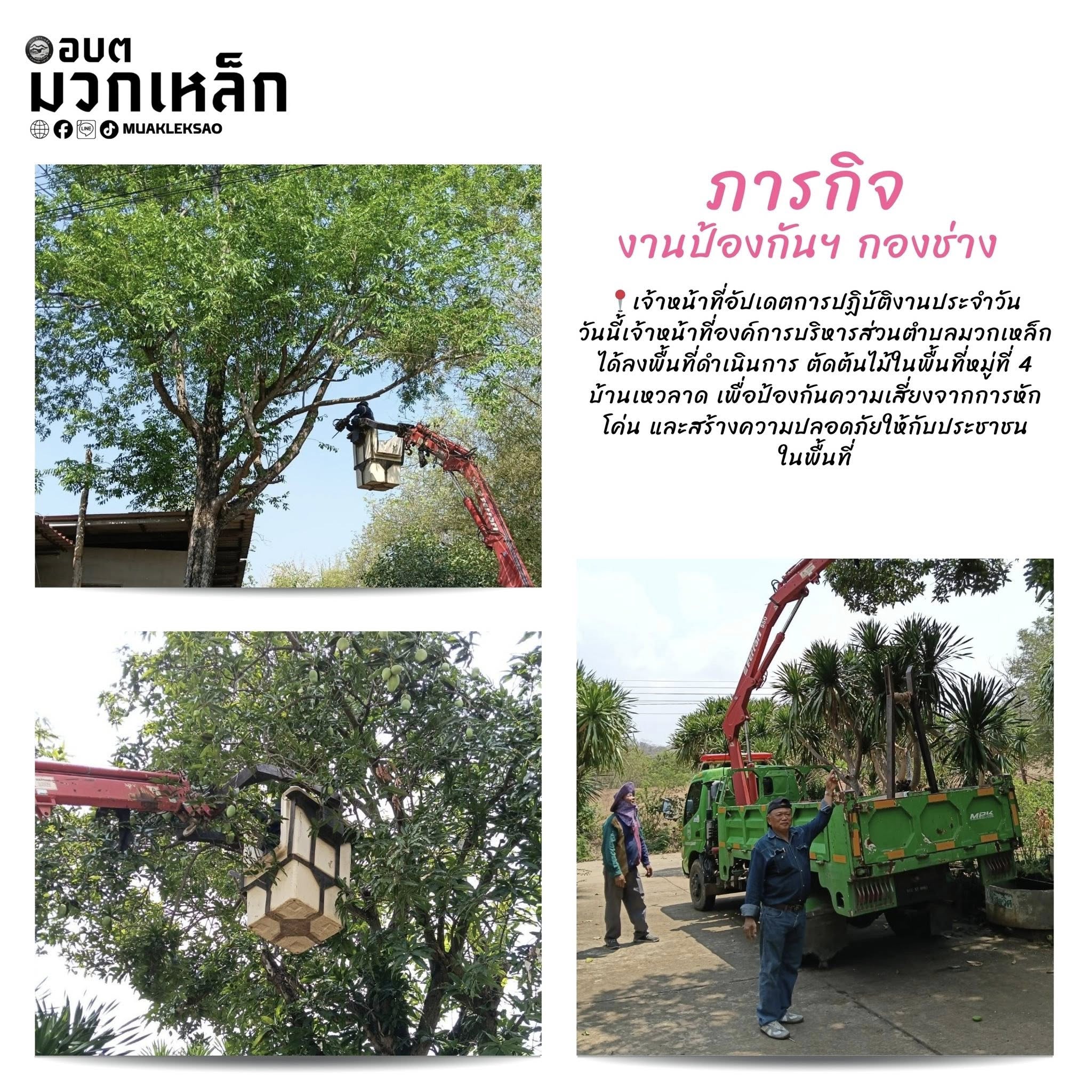 องค์การบริหารส่วนตำบลมวกเหล็ก ภายใต้การนำของ นายสุรศักดิ์ วาดเขียน นายก อบต.มวกเหล็ก ได้มอบหมายให้ นายสวัสดิ์ โสมรักษ์ รองนายก อบต.มวกเหล็ก นำทีมเจ้าหน้าที่งานป้องกันและบรรเทาสาธารณภัย ร่วมกับกองช่าง ลงพื้นที่ดำเนินการแก้ไขปัญหาความเดือดร้อนของประชาชนอย่างเร่งด่วน ในการตัดต้นไม้ขนาดใหญ่ ซึ่งมีความเสี่ยงต่อการหักโค่น เนื่องจากในช่วงนี้มีฝนตกและลมกระโชกแรง อาจก่อให้เกิดอันตรายต่อบ้านเรือนและทรัพย์สินของประชาชน