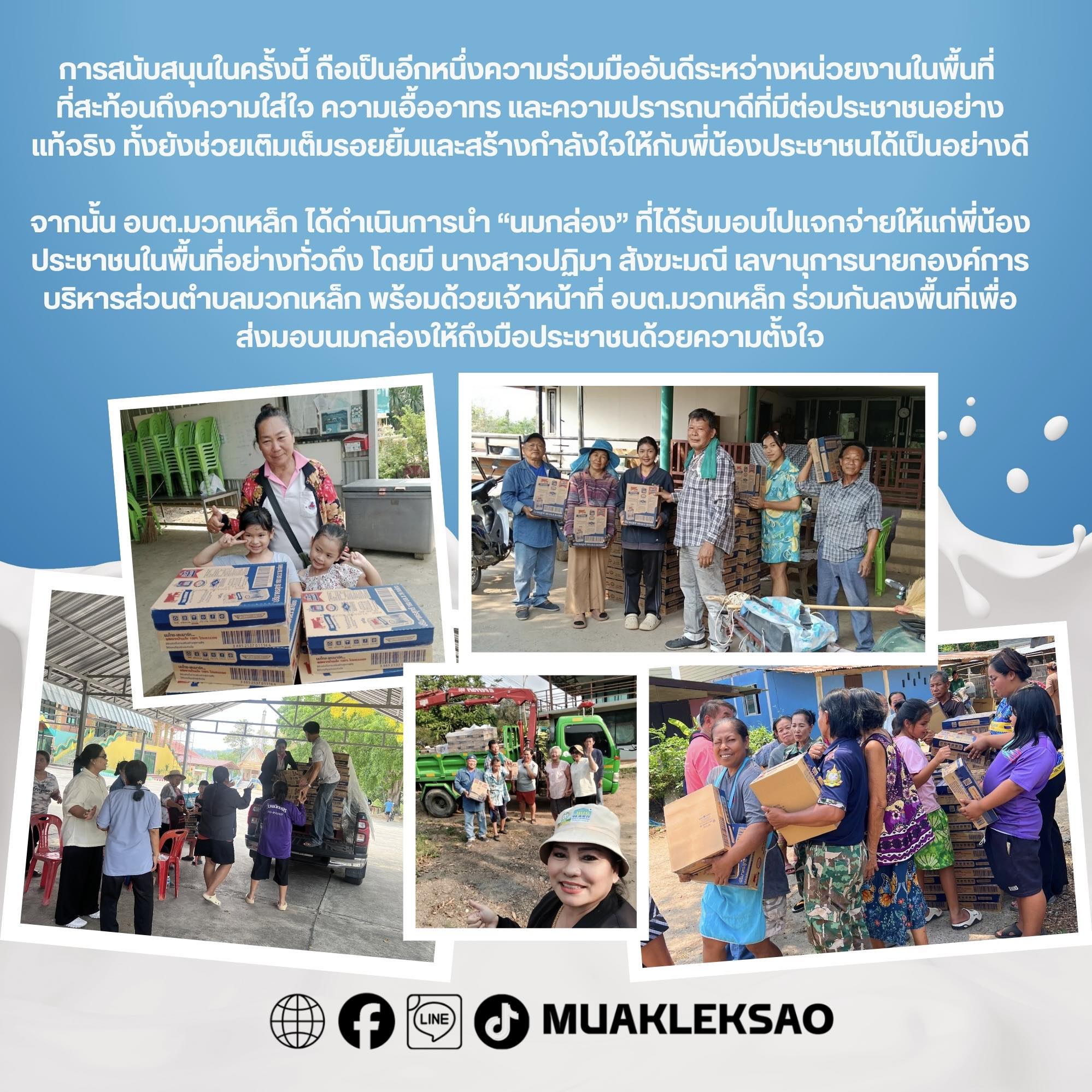 จากนั้น อบต.มวกเหล็ก ได้ดำเนินการนำ “นมกล่อง” ที่ได้รับมอบไปแจกจ่ายให้แก่พี่น้องประชาชนในพื้นที่อย่างทั่วถึง โดยมี นางสาวปฏิมา สังฆะมณี เลขานุการนายกองค์การบริหารส่วนตำบลมวกเหล็ก พร้อมด้วยเจ้าหน้าที่ อบต.มวกเหล็ก ร่วมกันลงพื้นที่เพื่อส่งมอบนมกล่องให้ถึงมือประชาชนด้วยความตั้งใจและเต็มเปี่ยมไปด้วยความห่วงใย