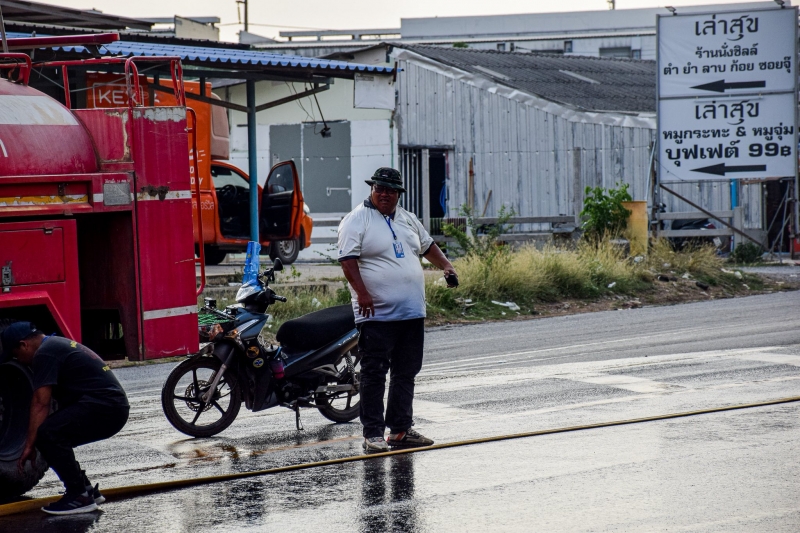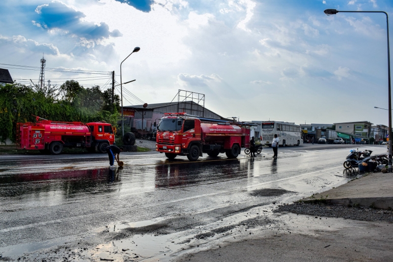 ในการนี้ เจ้าหน้าที่งานป้องกันฯ ได้เร่งนำรถบรรทุกน้ำเข้าดำเนินการฉีดล้างทำความสะอาดพื้นผิวถนน เพื่อลดปริมาณฝุ่นละอองและขจัดเศษหินที่ตกค้างบนผิวจราจร พร้อมทั้งช่วยเพิ่มความปลอดภัยให้กับผู้ใช้รถใช้ถนนในบริเวณดังกล่าว