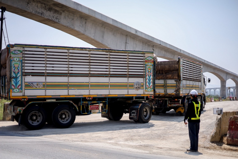 • การทดลองนำรถพ่วงขนาดยาวทดสอบการใช้งานเส้นทางเบี่ยง เพื่อประเมินความปลอดภัยในการสัญจร