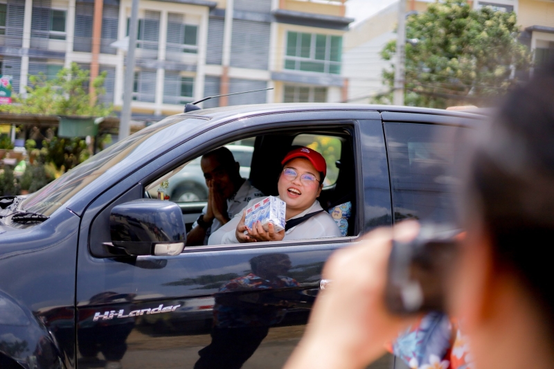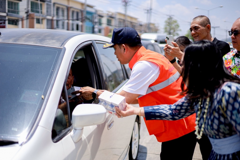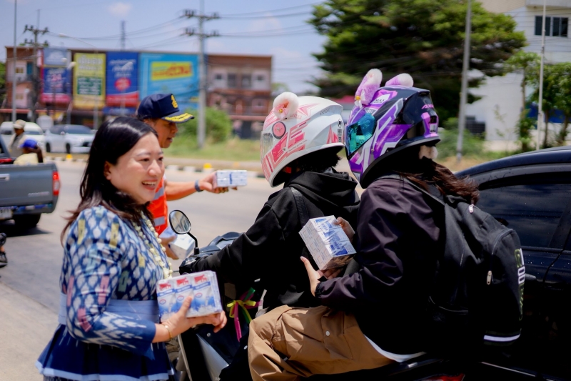 นอกจากนี้ ยังได้มีการแจกจ่ายนมกล่องให้กับประชาชน โดยได้รับการสนับสนุนนมกล่องจาก องค์การส่งเสริมกิจการโคนมแห่งประเทศไทย (อ.ส.ค.) สร้างความประทับใจและรอยยิ้มให้กับผู้สัญจรเป็นอย่างดี