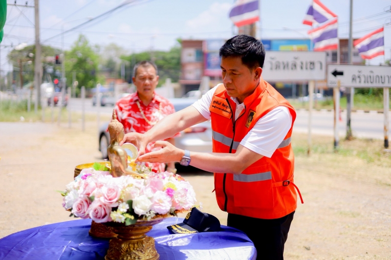 ในการนี้ คณะผู้บริหารและเจ้าหน้าที่ได้ร่วมประกอบพิธี รดน้ำพระ เพื่อความเป็นสิริมงคล เนื่องในโอกาสวันขึ้นปีใหม่ไทย สืบสานวัฒนธรรมประเพณีอันดีงามของไทย พร้อมทั้งได้ร่วมพบปะพูดคุย ให้กำลังใจเจ้าหน้าที่ผู้ปฏิบัติงานทุกภาคส่วน ที่เสียสละเวลาในการอำนวยความสะดวกและดูแลความปลอดภัยให้กับประชาชนที่สัญจรผ่านไปมาในช่วงเทศกาล