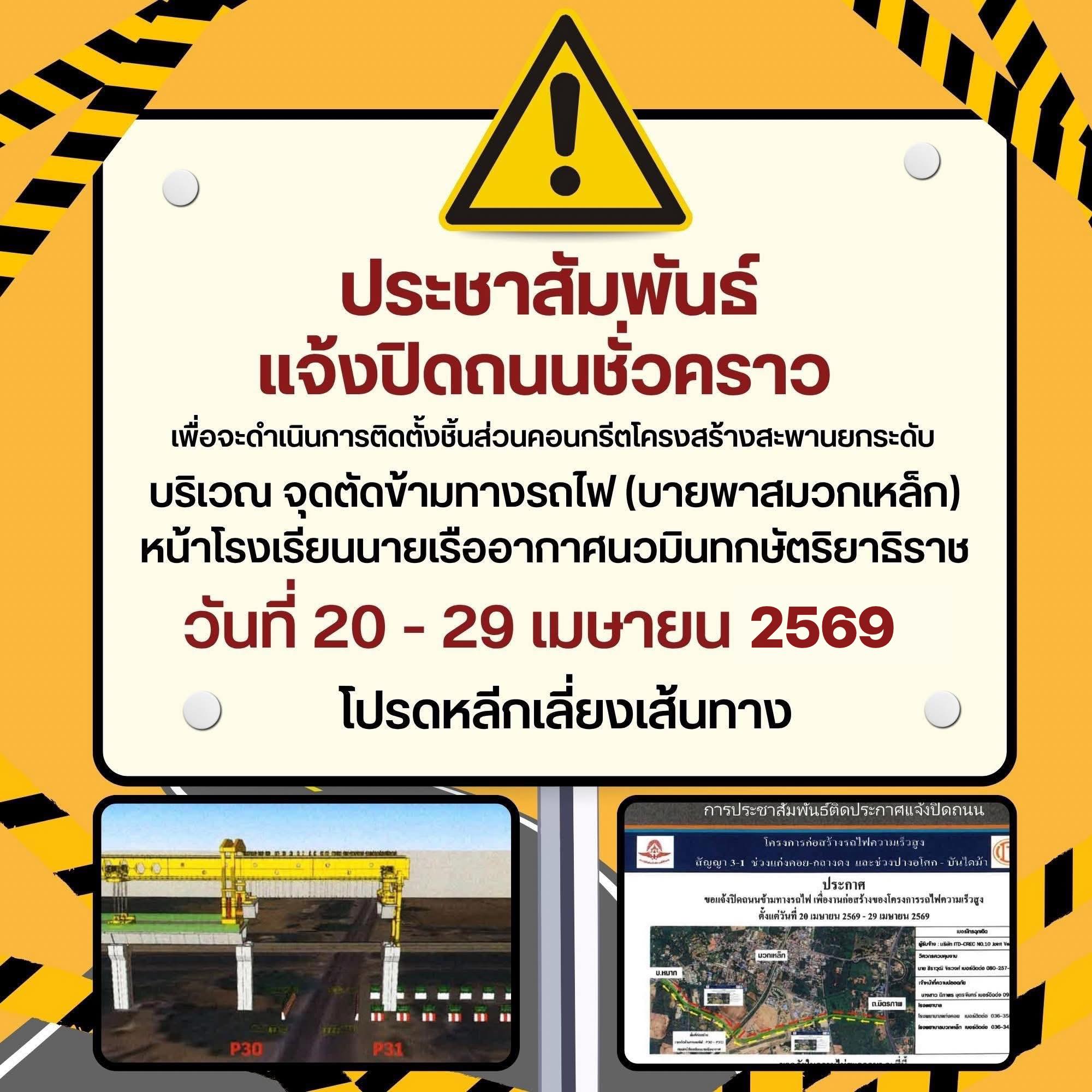 #แจ้งปิดถนน #มวกเหล็ก #รถไฟความเร็วสูง #อบตมวกเหล็ก