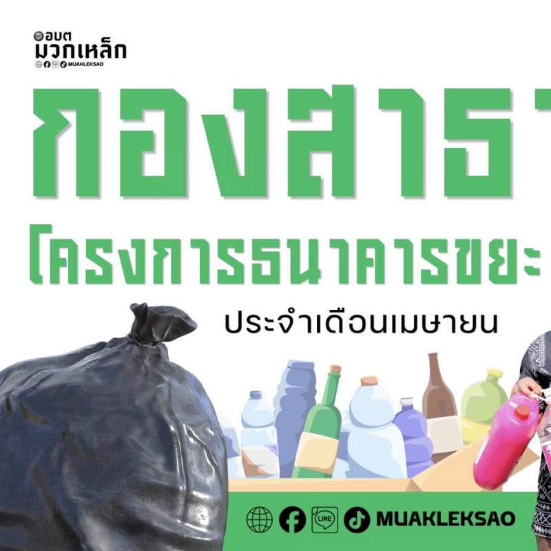 องค์การบริหารส่วนตำบลมวกเหล็ก ขอเชิญชวนพี่น้องประชาชนทุกท่าน เข้าร่วมเป็นสมาชิก “ธนาคารขยะ” เพื่อร่วมกันดูแลสิ่งแวดล้อม และสร้างสังคมแห่งการให้ไปพร้อมกัน
