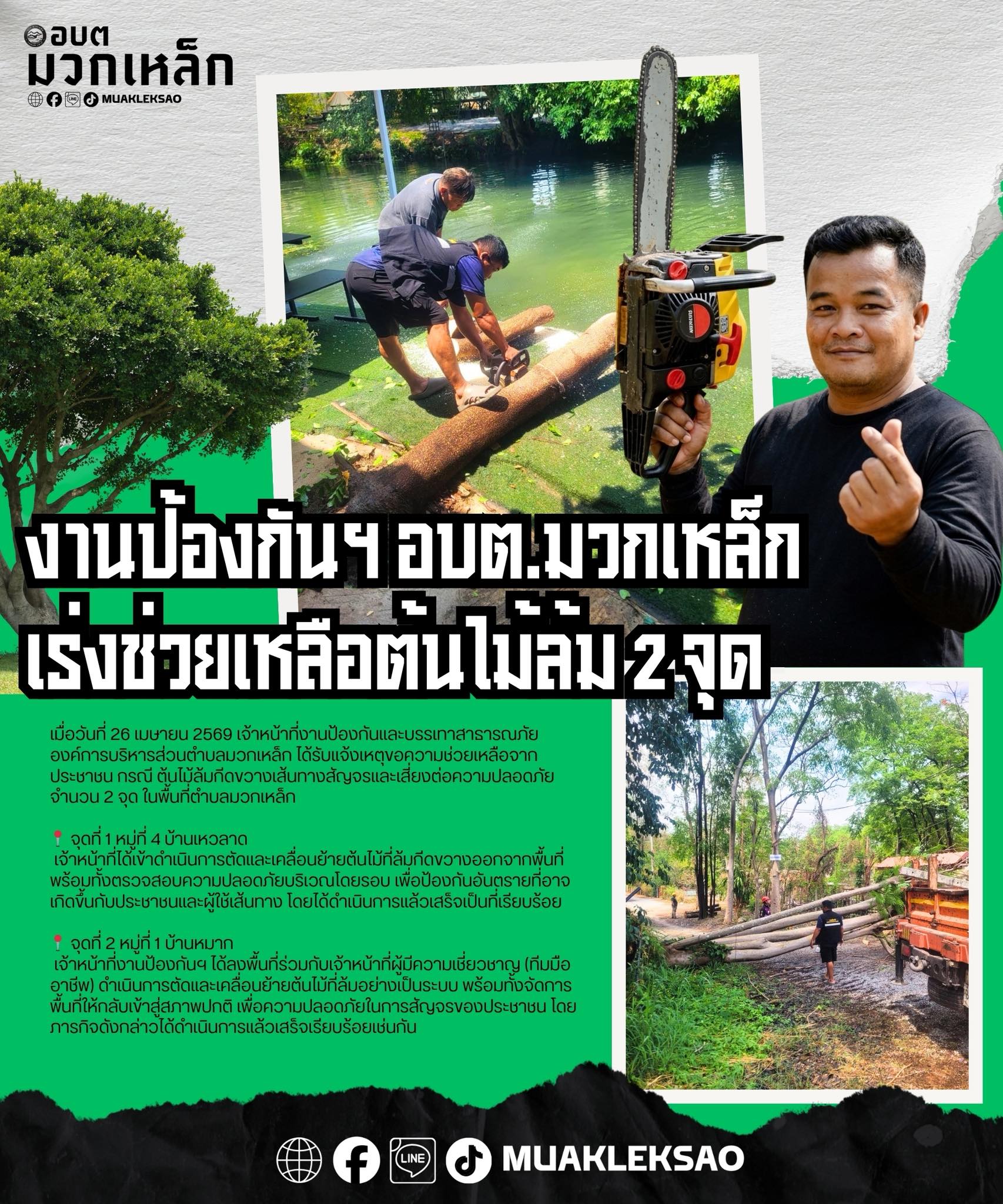 กองช่าง อบต.มวกเหล็ก ลงพื้นที่ดำเนินการตัดแต่งต้นไม้ที่มีสภาพรกทึบ เสี่ยงต่อการโค่นล้ม และบดบังทัศนวิสัยในการสัญจร เพื่อความปลอดภัยของประชาชนผู้ใช้เส้นทาง