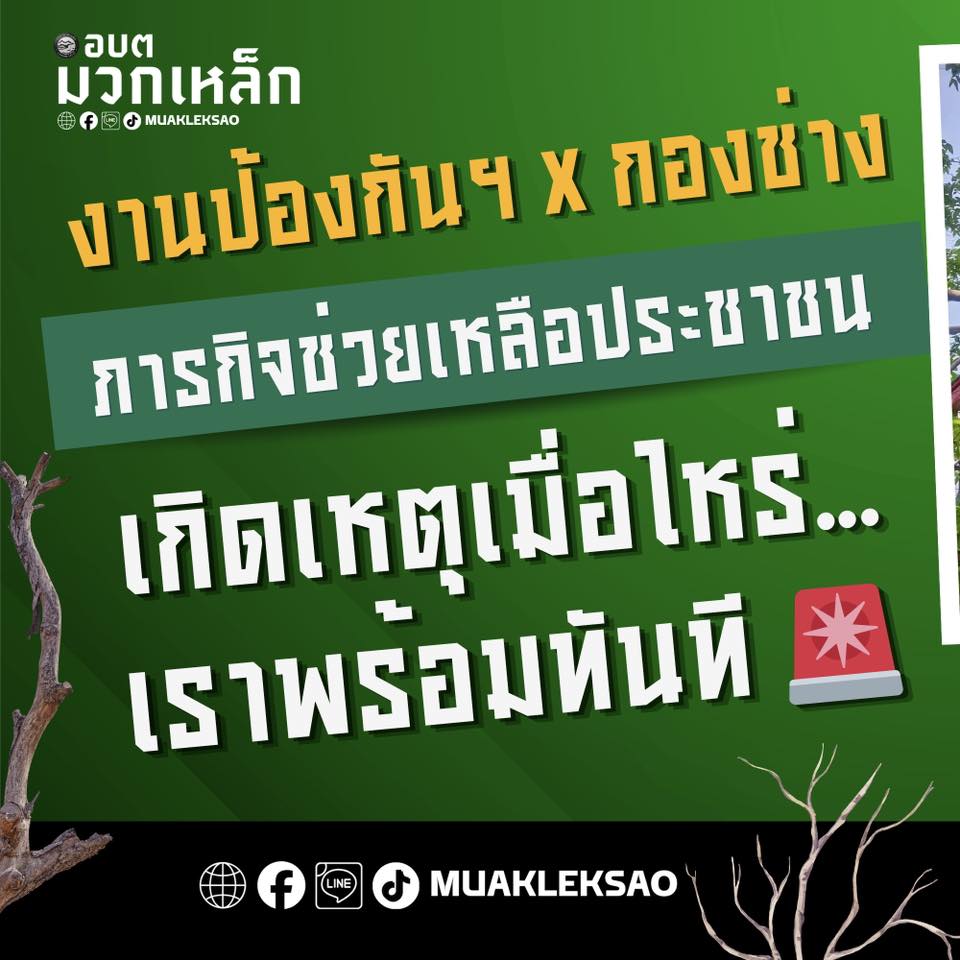 องค์การบริหารส่วนตำบลมวกเหล็ก ได้รับแจ้งเหตุขอความช่วยเหลือจากประชาชน กรณี ต้นไม้ล้มกีดขวางเส้นทางสัญจรและเสี่ยงต่อความปลอดภัย จำนวน 2 จุด ในพื้นที่ตำบลมวกเหล็ก