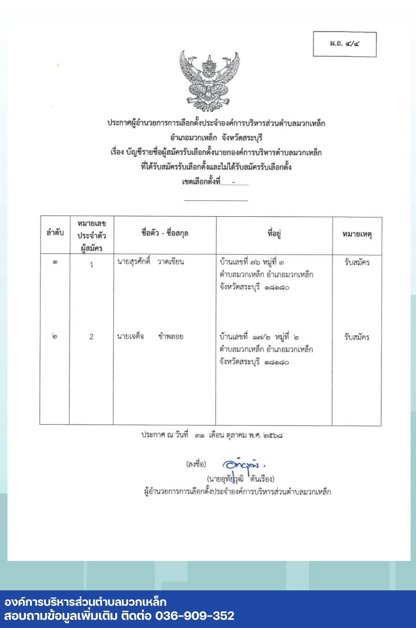 ประกาศ บัญชีรายชื่อผู้สมัครรับเลือกตั้งนายกองค์กา...