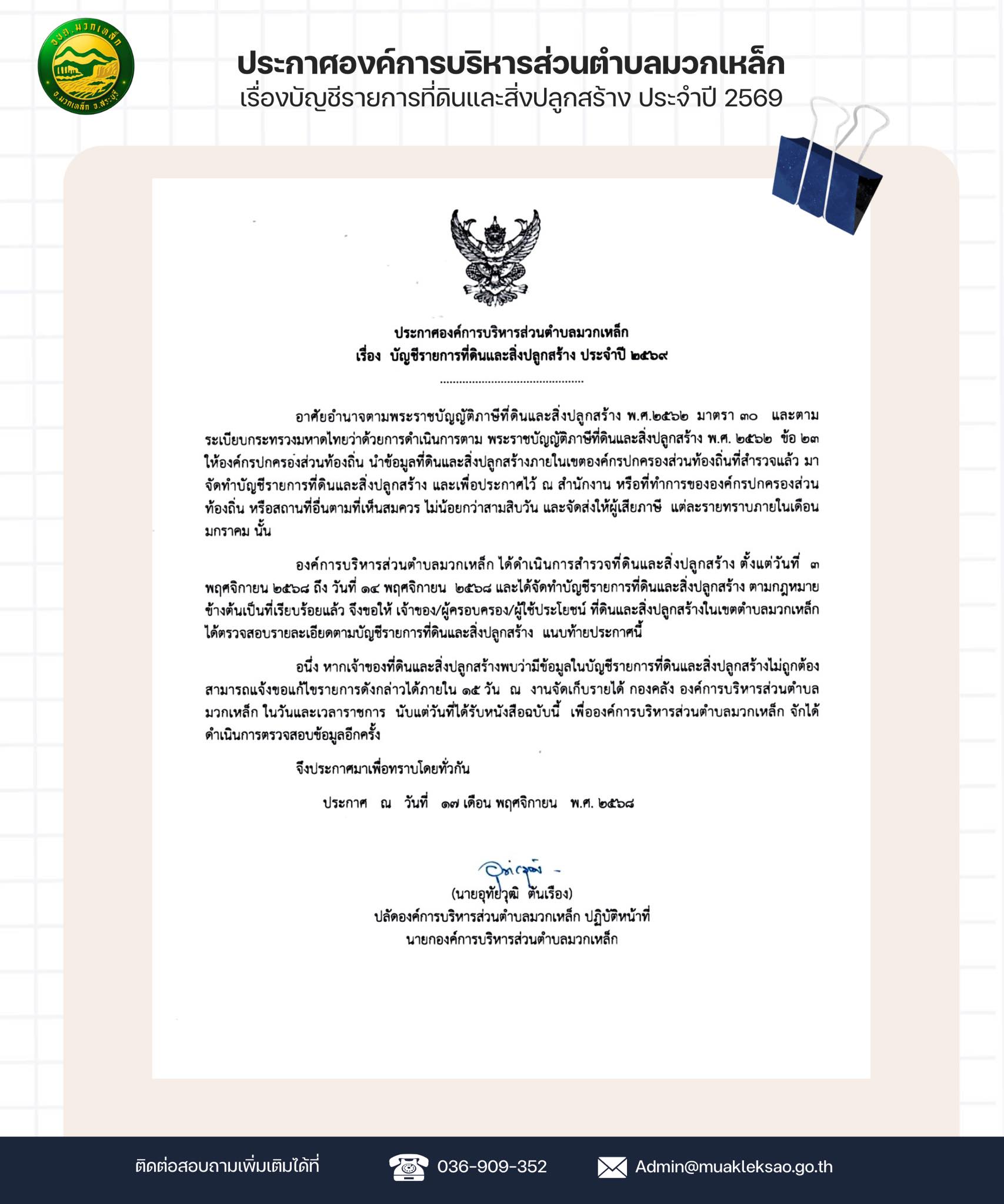 ประชาสัมพันธ์แจ้งการตรวจสอบบัญชีรายการที่ดินและสิ่...