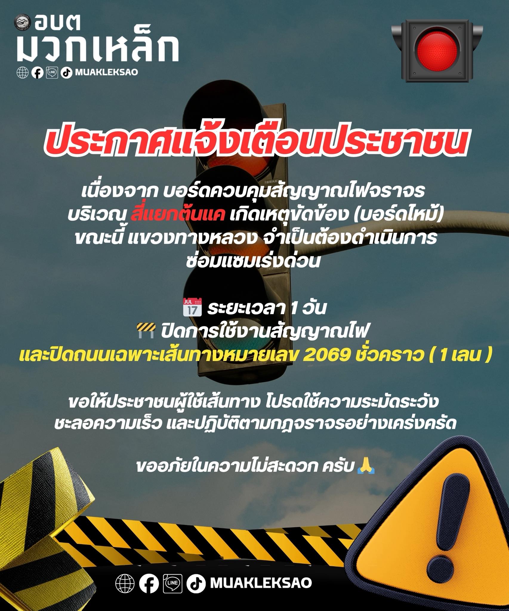 ประกาศแจ้งเตือนประชาชน ปิดการใช้งานสัญญาณไฟ และปิด...