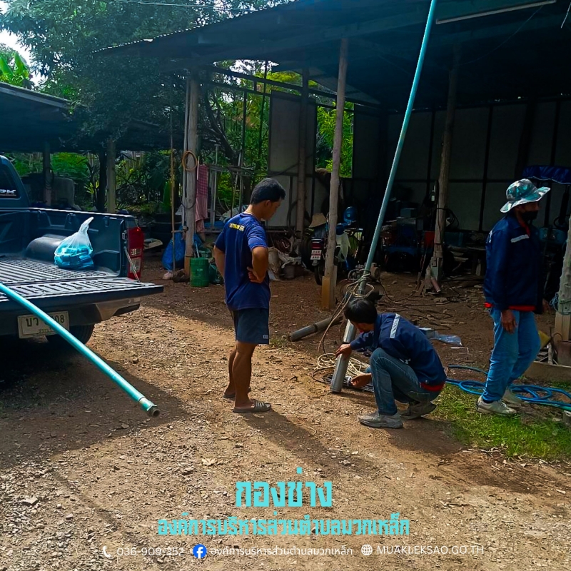 เจ้าหน้าที่กองช่าง องค์การบริหารส่วนตำบลมวกเหล็ก ได้ลงพื้นที่ดำเนินการ ติดตั้งท่อและปั๊มน้ำซับเมอร์ส (Submersible Pump) ณ บริเวณสนามฟุตบอล ใกล้ศูนย์เศรษฐกิจพอเพียง หมู่ที่ ๑๒ บ้านเขาไม้เกวียน ตำบลมวกเหล็ก อำเภอมวกเหล็ก จังหวัดสระบุรี