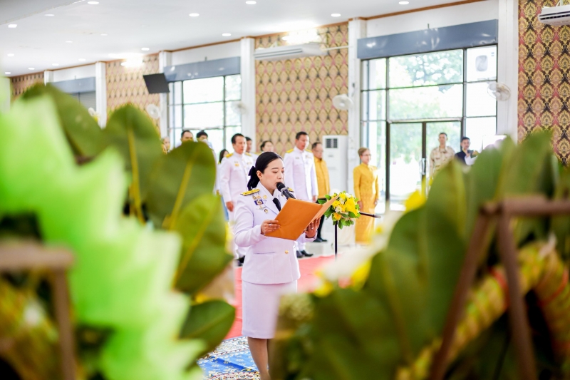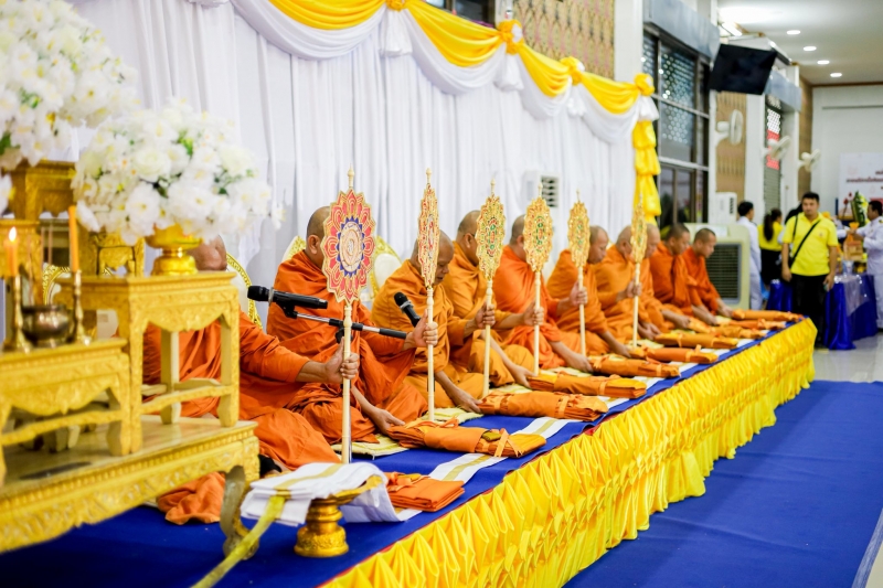 พิธีเริ่มขึ้นเวลา ๐๗.๓๐ น. ด้วยการสวดพระพุทธมนต์และทำบุญตักบาตรพระสงฆ์ เพื่อถวายเป็นพระราชกุศล และในเวลา ๐๘.๐๐ น. ได้มีการประกอบพิธีวางพวงมาลาและถวายบังคม เพื่อน้อมสำนึกในพระมหากรุณาธิคุณของพระองค์ท่านอย่างหาที่สุดมิได้
