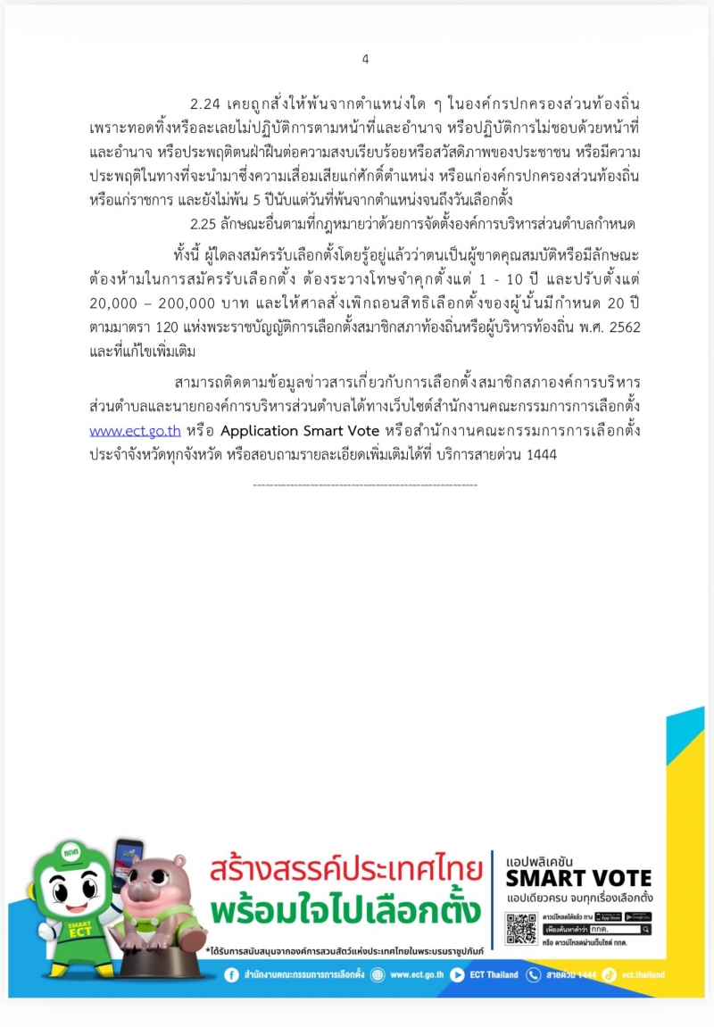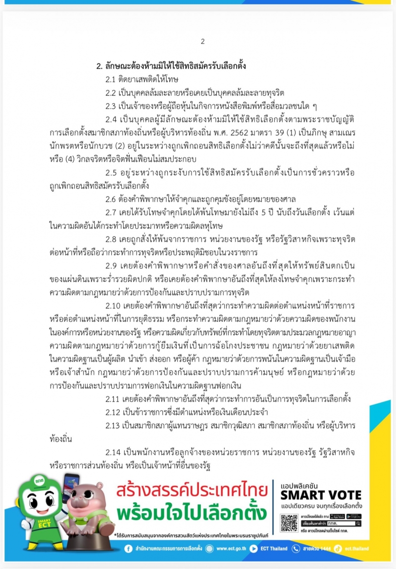 ผู้ที่สนใจสมัครรับเลือกตั้งสามารถตรวจสอบคุณสมบัติและลักษณะต้องห้าม