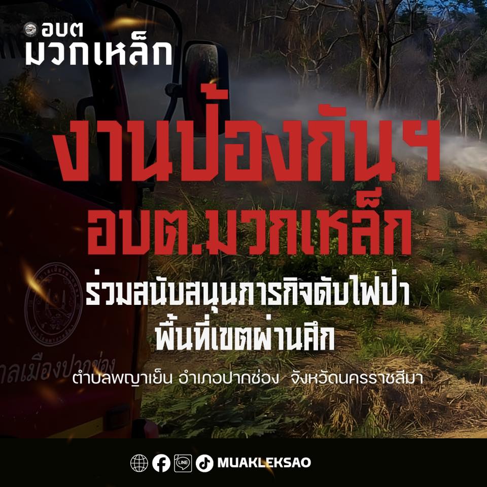 วันที่ 10 มีนาคม 2569 งานป้องกันและบรรเทาสาธารณภัย องค์การบริหารส่วนตำบลมวกเหล็ก ได้รับแจ้งขอรับการสนับสนุน รถบรรทุกน้ำ เพื่อเข้าร่วมภารกิจ ควบคุมและระงับเหตุไฟป่า บริเวณพื้นที่ แถววัดถ้ำอุดมสุข เขตผ่านศึก ตำบลพญาเย็น อำเภอปากช่อง จังหวัดนครราชสีมา