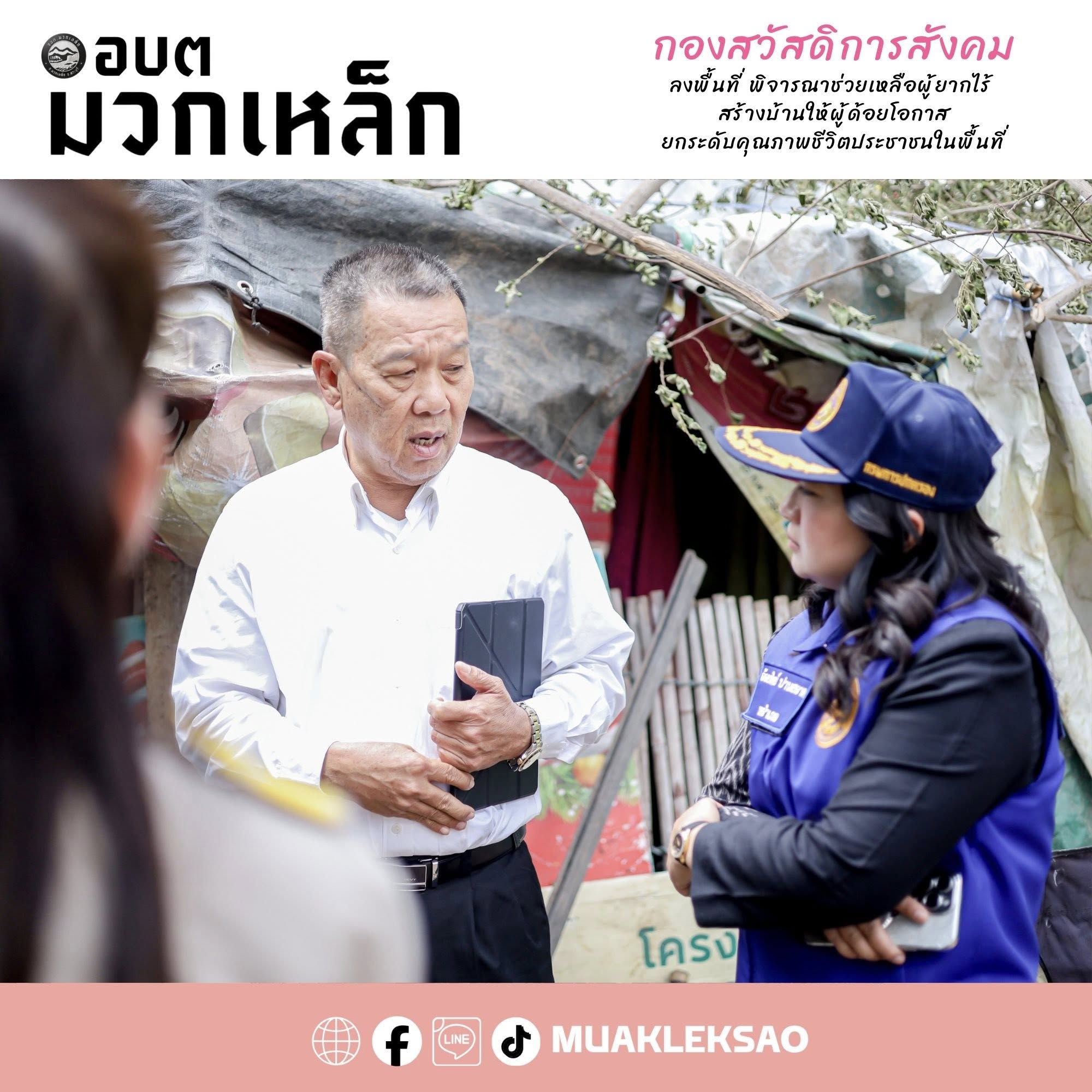 นายสุรศักดิ์ วาดเขียน นายกองค์การบริหารส่วนตำบลมวกเหล็ก พร้อมด้วยหัวหน้าส่วนราชการ และเจ้าหน้าที่กองสวัสดิการสังคม องค์การบริหารส่วนตำบลมวกเหล็ก ร่วมลงพื้นที่และให้การต้อนรับ น.ส.อ้อยทิพย์ ปานสอาด นายอำเภอมวกเหล็ก ในโอกาสลงพื้นที่ตรวจเยี่ยมและพิจารณาคัดเลือกผู้ด้อยโอกาสในพื้นที่ตำบลมวกเหล็ก