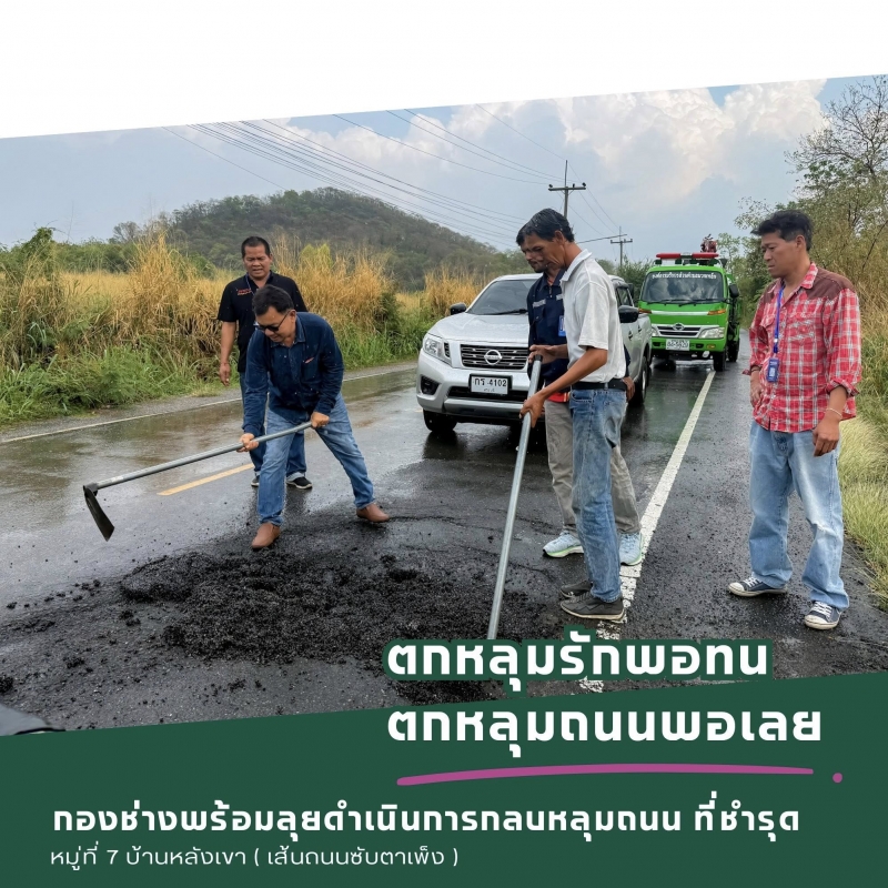 โดยเจ้าหน้าที่กองช่างได้ดำเนินการนำยางมะตอยกลบหลุมถนนบริเวณจุดที่ได้รับแจ้ง จำนวน 4 จุด ขณะนี้ได้ดำเนินการแล้วเสร็จเรียบร้อย เพื่อความปลอดภัยในการใช้เส้นทางของประชาชน