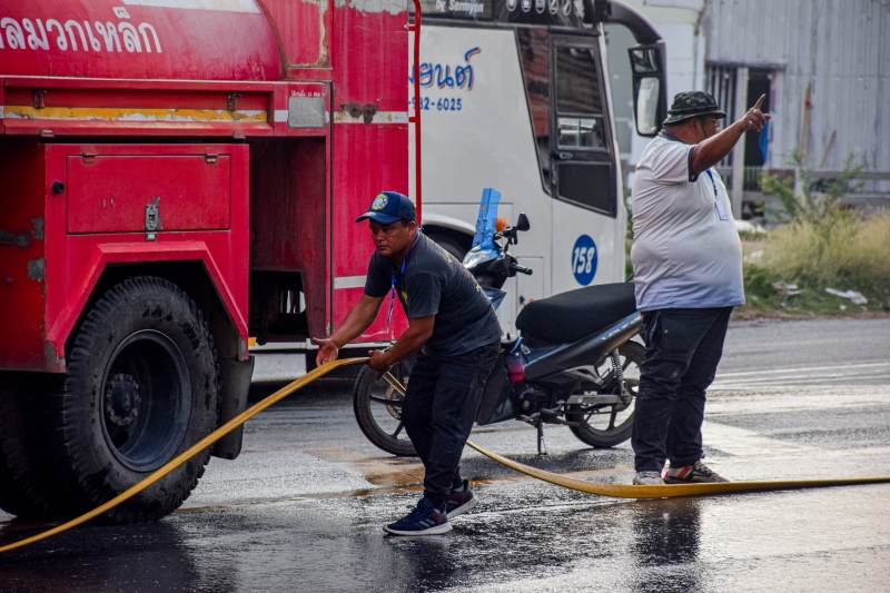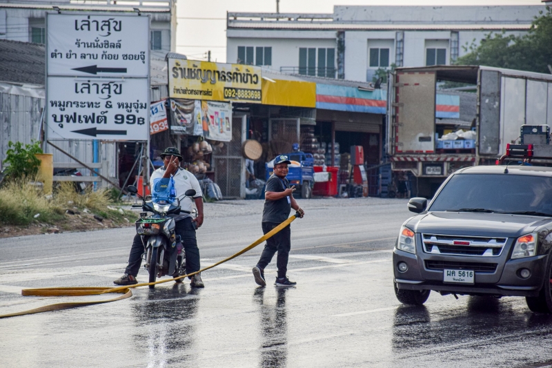 ในการนี้ เจ้าหน้าที่งานป้องกันฯ ได้เร่งนำรถบรรทุกน้ำเข้าดำเนินการฉีดล้างทำความสะอาดพื้นผิวถนน เพื่อลดปริมาณฝุ่นละอองและขจัดเศษหินที่ตกค้างบนผิวจราจร พร้อมทั้งช่วยเพิ่มความปลอดภัยให้กับผู้ใช้รถใช้ถนนในบริเวณดังกล่าว