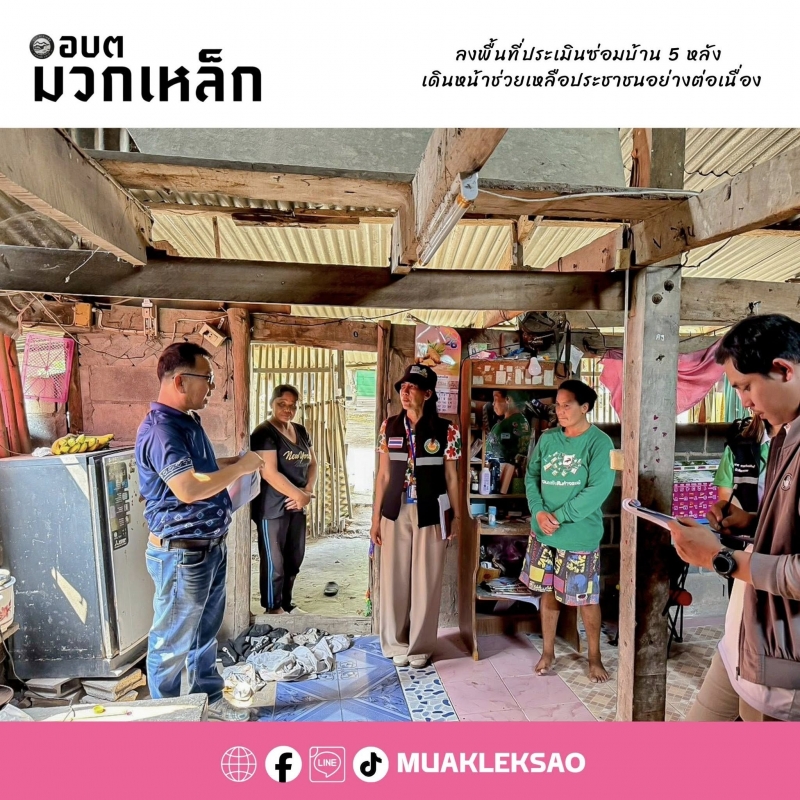 วันที่ 3 เมษายน 2569 องค์การบริหารส่วนตำบลมวกเหล็ก ภายใต้การนำของนายสุรศักดิ์ วาดเขียน นายกองค์การบริหารส่วนตำบลมวกเหล็ก มอบหมายให้กองสวัสดิการสังคมร่วมกับกองช่าง ลงพื้นที่ดำเนินการประเมินราคาค่าใช้จ่ายในการซ่อมแซมและก่อสร้างที่อยู่อาศัยของประชาชน