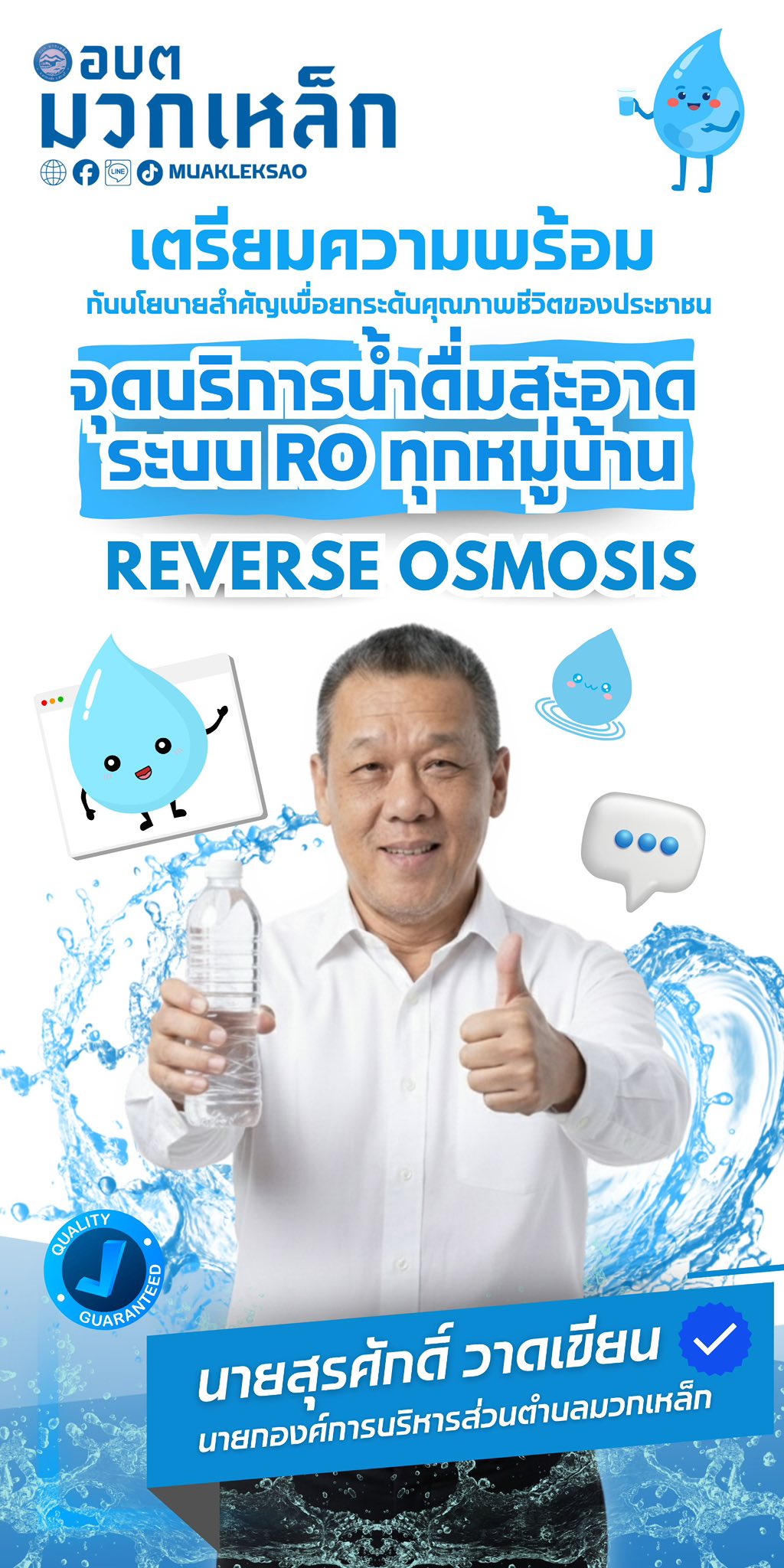 เตรียมความพร้อมพี่น้องประชาชนชาวตำบลมวกเหล็ก กับนโยบายสำคัญเพื่อยกระดับคุณภาพชีวิตของประชาชน “จุดบริการน้ำดื่มสะอาด ระบบ RO ทุกหมู่บ้าน”